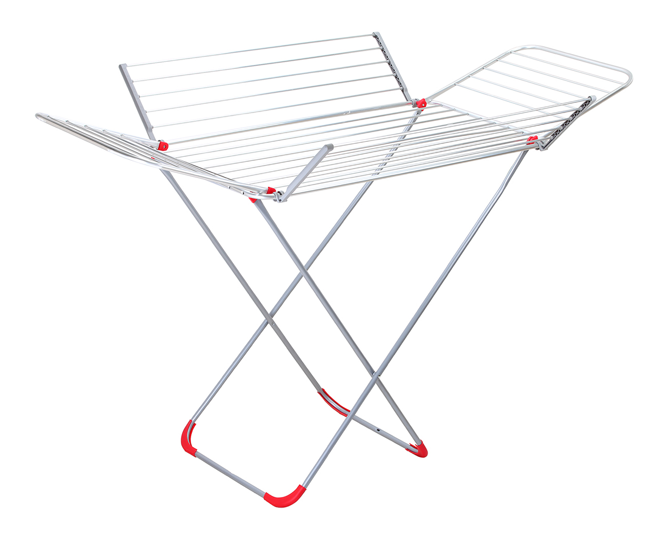 Tendedero plegable de 4 alas con estructura superior en aluminio anodizado y patas de acero con tratamiento especial antióxido. Garantizado 100% anticorrosión. Superficie útil 28 m. Sistema de plegado sin bisagras para soportar el máximo peso y ocupar el mínimo espacio. PRESENTACIÓN: Retráctil con folleto a color DIMENSIONES: 56x133x5 cm (95x179x93 cm abierto) PESO NETO: 2,2 kg CAJA MASTER 6 ud. (133x58x22 cm - 14,6 kg)