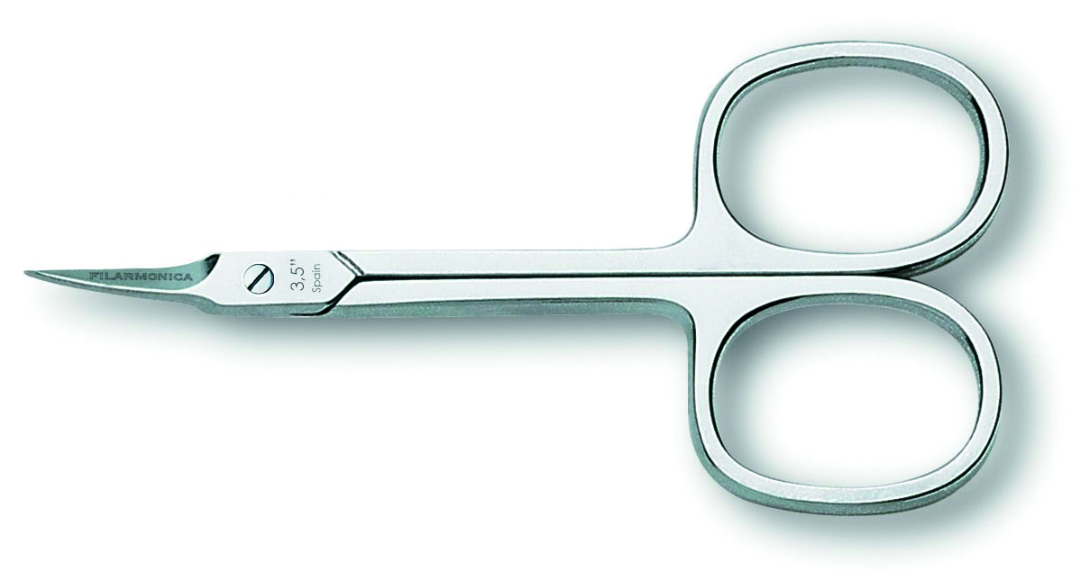 Tijera estampada en frío. Niquelada. Medialuna. Blister.