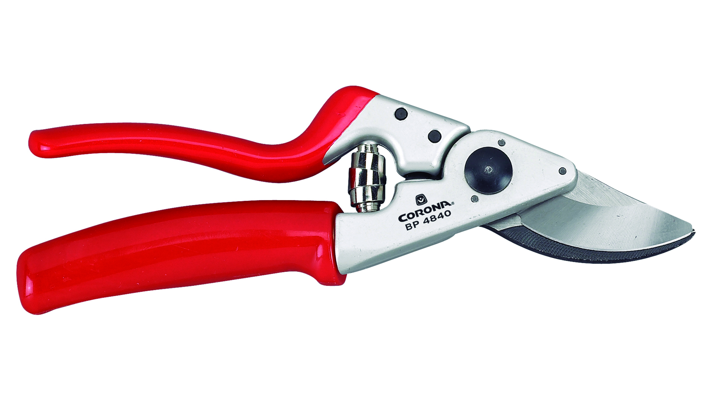 CORONA TIJERA PODA CON ASA GIRATORIA CORTE 1" BP4840.Capacidad de corte 25 mm. Medida 21cm. Mango giratorio para reducir el esfuerzo y la fatiga.Muelle tipo gusano para un corte suave. Sistema de tuercas-bulón para un ajuste preciso. Tijera ligera en aluminio forjado. Hoja recambiable y reafilable de acero al carbono.