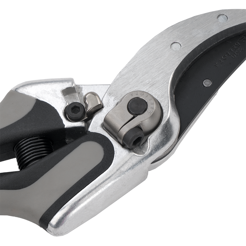 Tijera de una mano bypass universal, hojas con recubrimiento antiadherente para un corte limpio. Mango trimaterial co-inyectado para mayor durabilidad, diseño de mangos ergonómico para rellenar bien la mano y transmitir mejor la fuerza. Medida 21 cm. Diámetro de corte 25mm. Para uso intensivo. Sistema de ajuste hoja-contrahoja patentado.