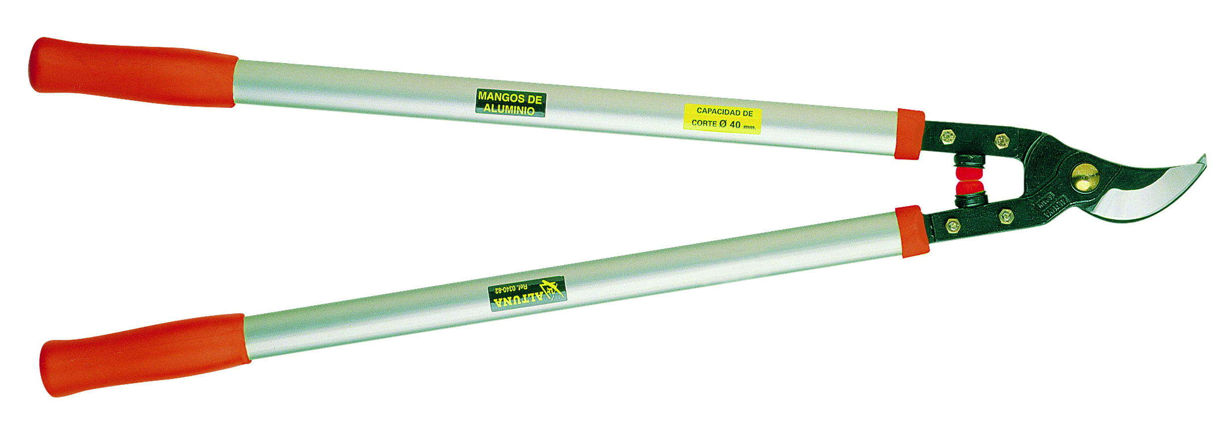 Altuna tijera poda 2 manos classic. Tijera 2 manos gran capacidad de corte, ligera y robusta para usos intensivo y profesional. Mangos aluminio reforzado. Corte bypass. Forjada. Sistema profix. Poda verde. Uso: árboles, frutales, olivos, viñedos,.... medida: 82 cm. Corte 40 mm.