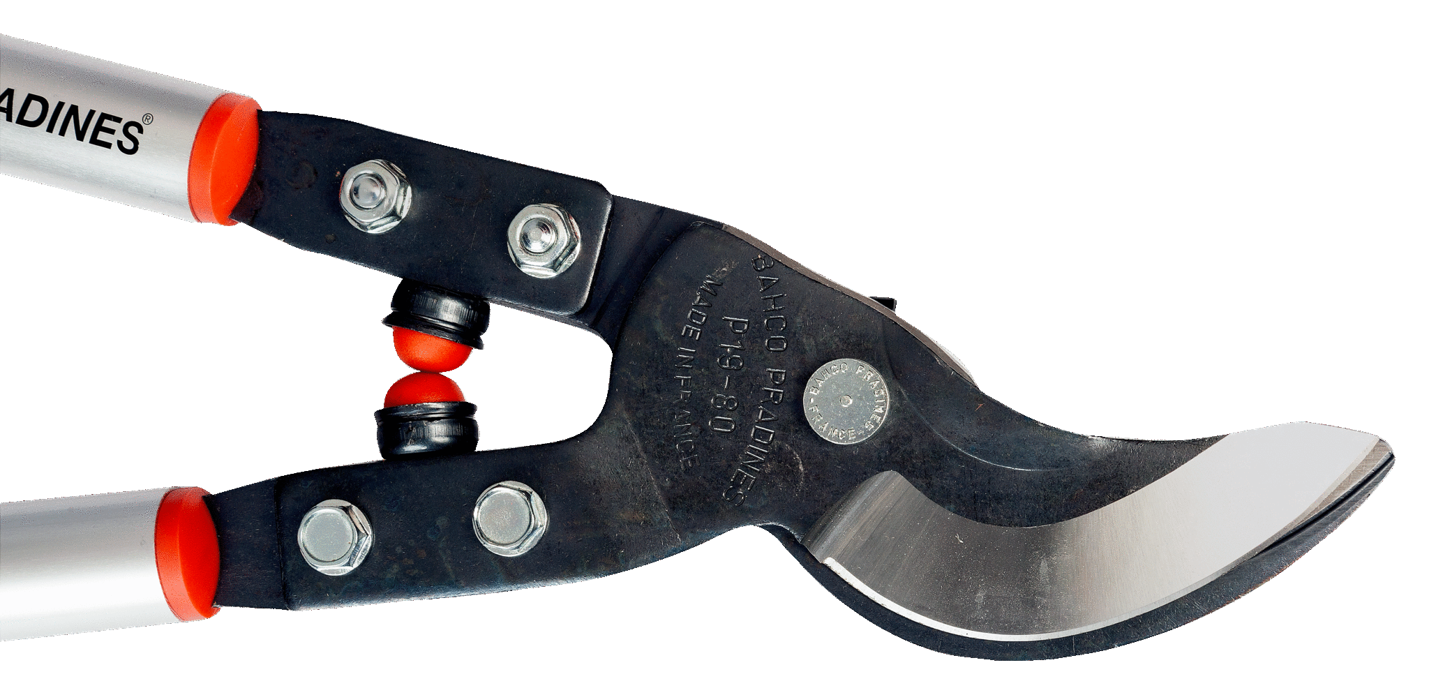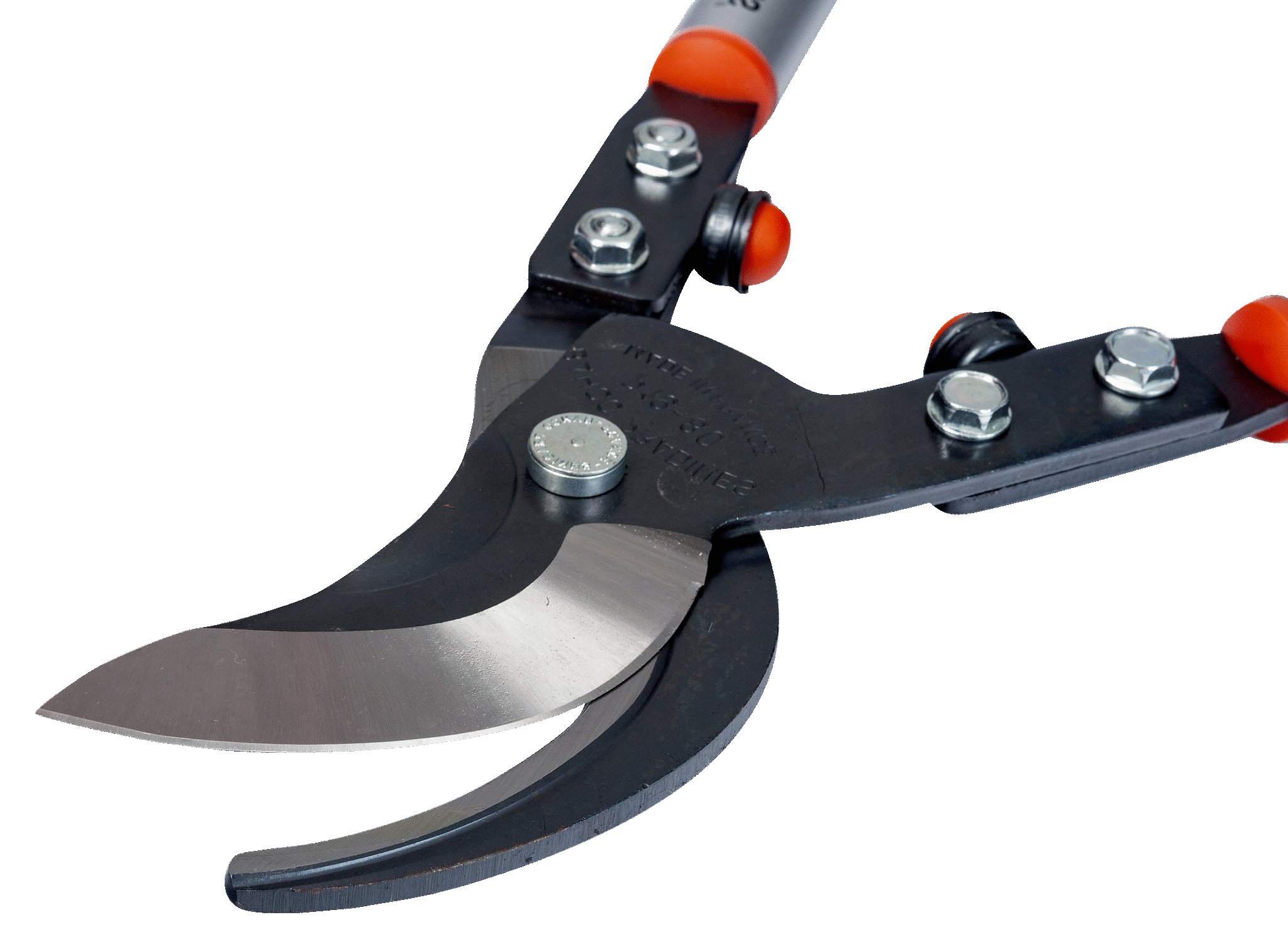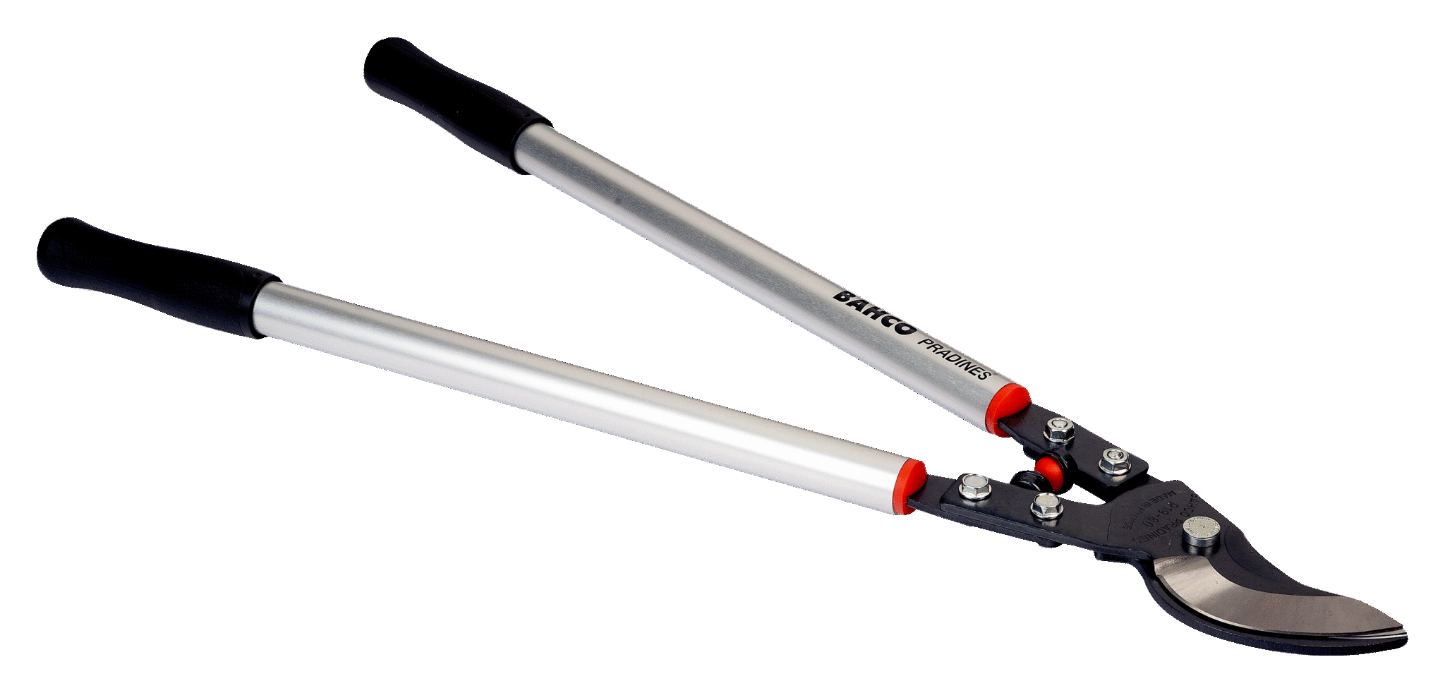 Tijeras de podar de dos manos de corte deslizante de 50 mm y con mango de aluminio P19. Capacidad de corte 50 mm. Tijera 800 mm. Cabezal de corte con hoja totalmente templada. Largo alcance, incluso en altura. Mangos de aluminio tubulares. Existen repuestos disponibles. Topes de goma que absorben el impacto,situados entre los mangos. Amortiguadores de impactos de goma. Sistema de bloqueo de perno central con pinza de muelle.