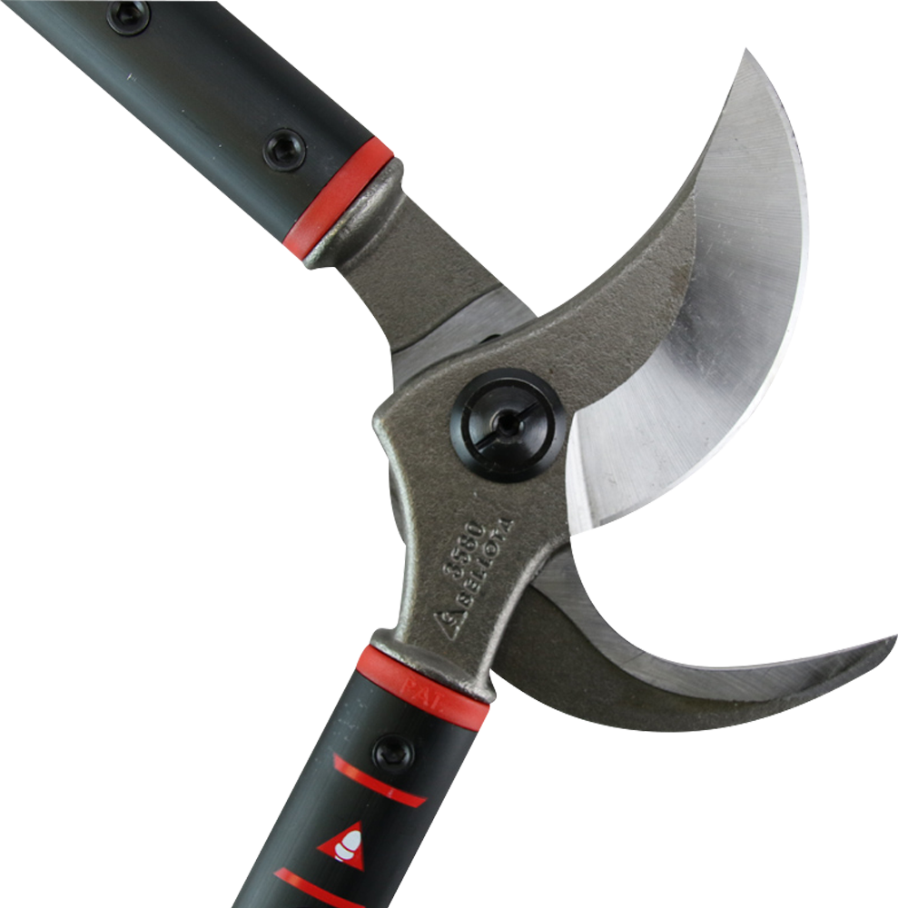 Tijera de dos manos, corte de ramas gruesas especial frutal con capacidad de corte 50mm. Medida 60 cm. Corte Bypass. La hoja y la contra hoja son forjadas de acero especial de alta resistencia. Tiene un sistema de ajuste hoja-contrahoja patentado.Amortiguadores extra con mayor superficie de contacto . Los mangos son de aluminio elíptico con empuñadura Soft Touch para un agarre cómodo.
