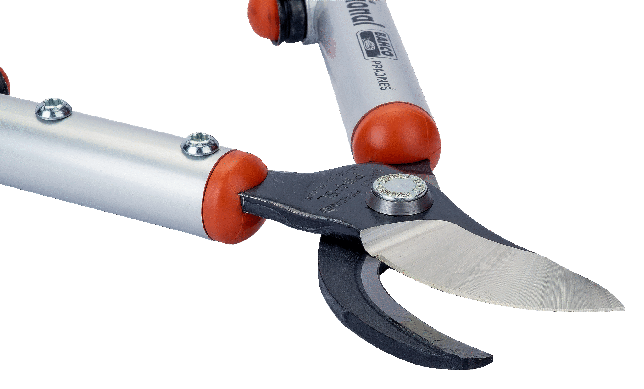 Tijeras de podar de dos manos de corte deslizante de 30 mm, profesionales y ligeras, con mango de aluminio P114-SL. Hoja pulida. Cabezal de corte estrecho. Mangos de longitud corta o media. Mangos de aluminio ligeros con hojas y contrahojas ensambladas en los mismos. Amortiguadores de impactos de goma. Sistema de bloqueo de perno central. Fácil acceso en espacios reducidos gracias a su cabezal de corte estrecho. Tijeras para cortar madera blanda o verde, especialmente en viñedos y huertos . Existen repuestos disponibles