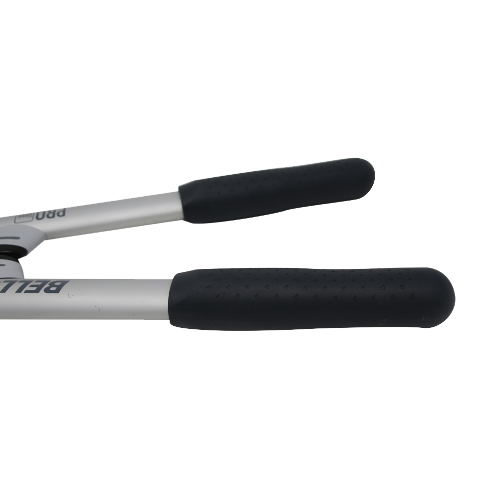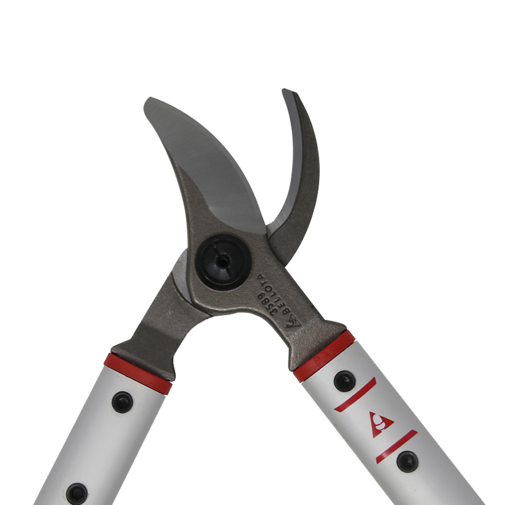 Tijera de manos ligera de corte especial para viña en espaldera, con contrahoja dentada- diámetro de corte 30mm. Corte bypass. Medida 50cm. Tijera de construcción ligera. Tiene la contrahoja dentada para conseguir una estabilidad mayor en el corte. La hoja y la contra hoja son forjadas de acero especial. Sistema de ajuste hoja-contrahoja patentado.Amortiguadores extra con mayor superficie de contacto.Mangos son de aluminio elíptico con empuñadura Soft Touch para un agarre cómodo.