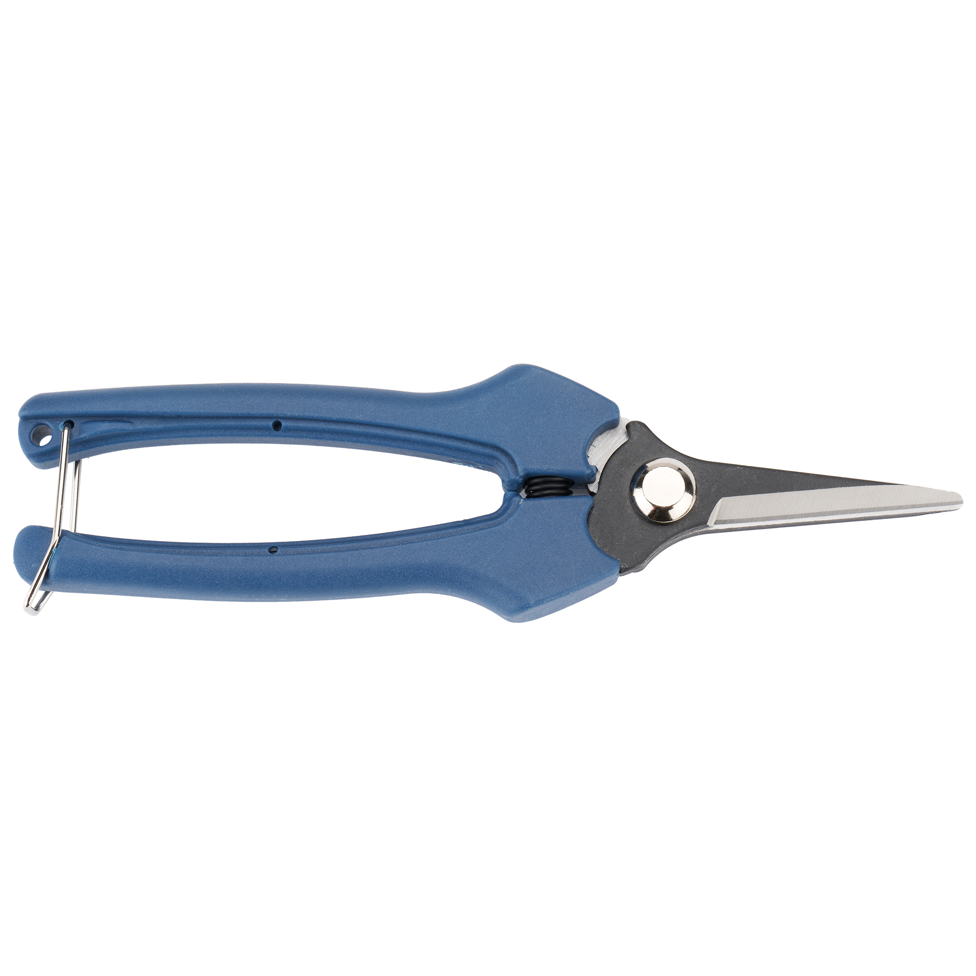 Tijera recolectora con mango monomaterial, MEDIDAS: 185x50x20mm. Hojas de Acero al carbono tratadas térmicamente paraa que el corte sea limpio y el filo se mantenga mas tiempo. Hoja alargada y recta, con una geometría muy conveniente para la recolección de la uva.