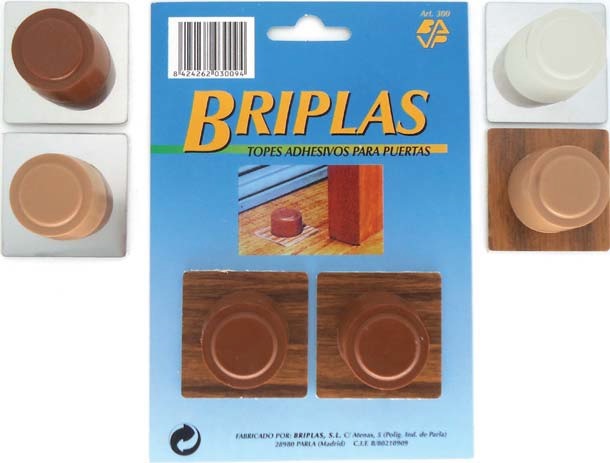REF.1300 TOPES ADHESIVOS PARA PUERTAS BASE INOX/MADERA. DISPLAY DE 2UD.