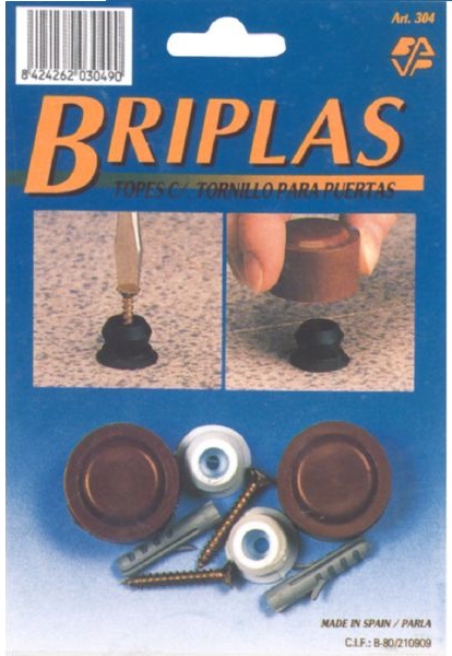 REF.1304 TOPES CON TORNILLO PARA PUERTAS DISPLAY DE 2 UD. COLORES BLANCO Y MARRON.