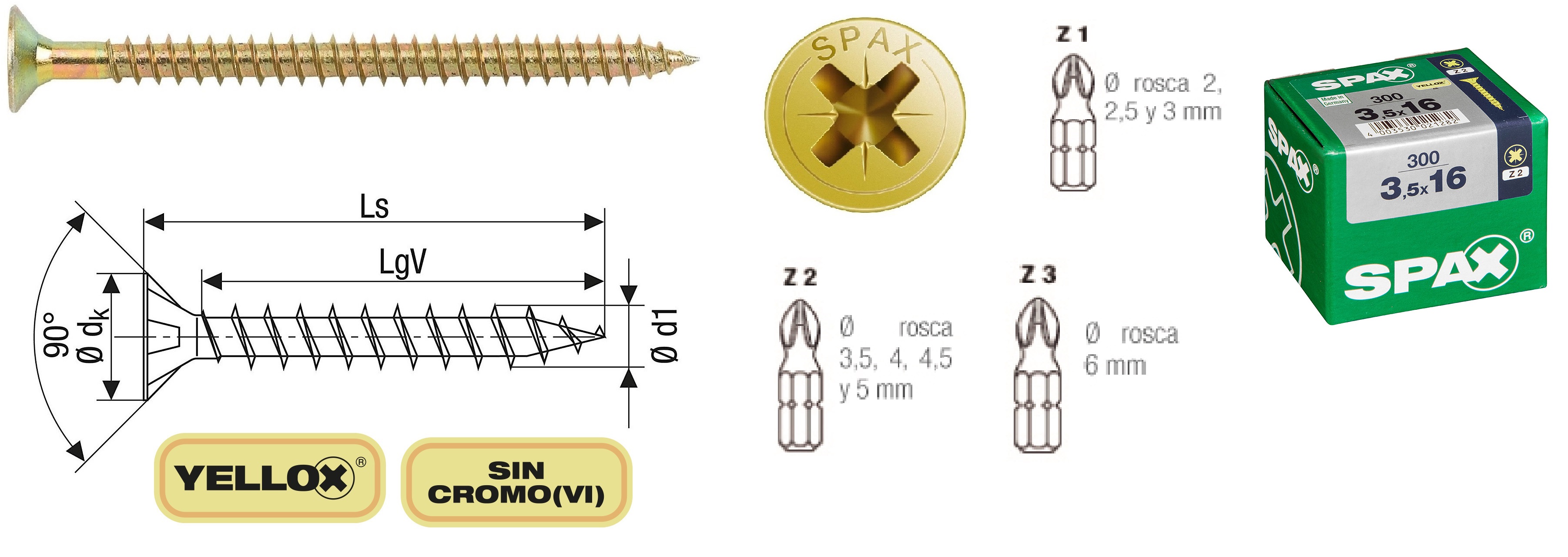 TORNILLO SPAX BICROMATADO EXP L 3,5X16 PZ-2 300UD CAJA CARTON