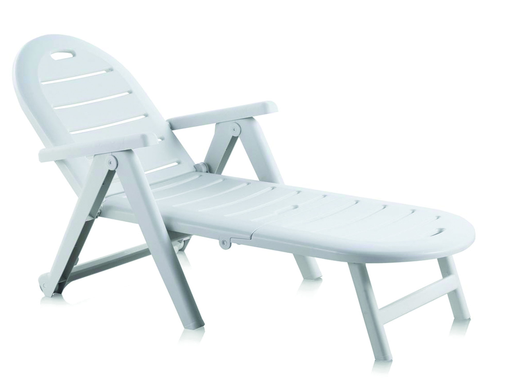 Tumbona Caiman Blanca s/cojin Ecogarden. Tumbona especialmente cómoda, gracias a sus reposabrazos. Sus colores se mantienen perfectos en exteriores, muy práctica a la hora de transportarla, se puede plegar y guardar fácilmente. Medidas LxWxH 74 x 19 x 84.