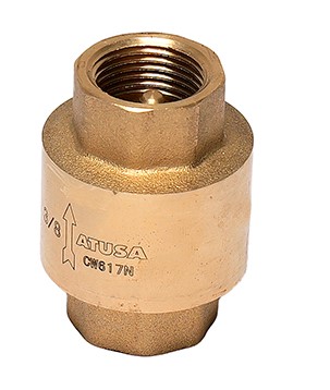 REF. 130 - VÁLVULA DE RETENCIÓN LATÓN A MUELLE - PN 16/10/8 Latón niquelado según EN 12165. Guía y disco de latón. Cierre goma NBR. Montaje horizontal o vertical.