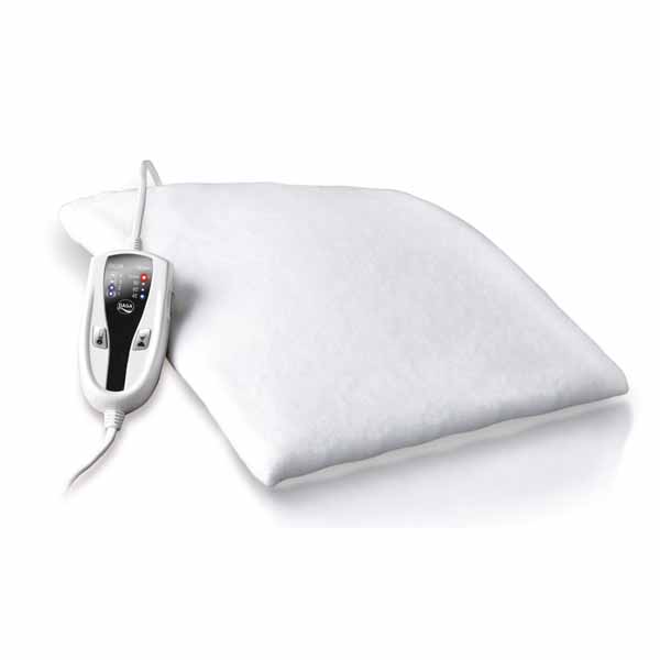 Tamaño 70x46cm. Potencia 120W. Conexión fija. 4niveles de temperatura. Regylador electrónico con pantalla de LED´s. Acabado textil acolchado. Funda lavable, tejido de algodón. Mando con 2 botones(temperatura y tiempo) Calentamiento rápido (5min).